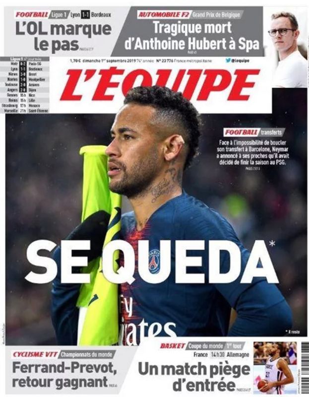 El diario L'Équipe, uno de los medios que siguió de cerca la operación, afirmó que "tras constatar la incapacidad de cerrar un regreso al Barcelona, Neymar le anunció a sus seres cercanos, este sábado por la noche, su decisión de terminar con las negociaciones", explicó.