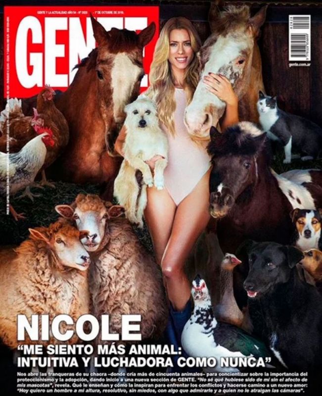 En medio de un nuevo conflicto mediático con Fabián Cubero, Nicole Neumann se transformó en la protagonista de la última tapa de revista Gente. ¿La curiosidad? En la imagen de portada aparece rodeada de muchos animales, como perros, gallinas, caballos y ovejas.