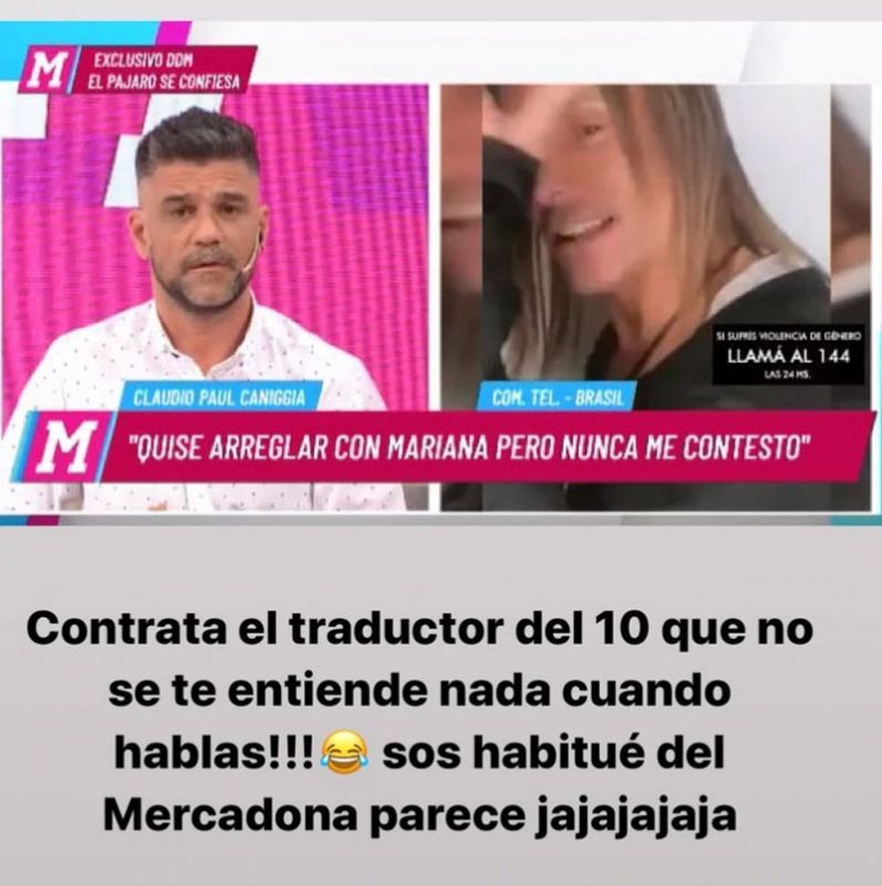 Luego de que su propio hijo Alexander anunciara el arribo de su madre al mundo virtual, la primera publicación de Mariana hizo referencia a una captura del exfutbolista en El Diario de Mariana, programa al que le dio una nota este viernes: "¡¡¡Contratá al traductor del 10 (por Diego Maradona), que no se te entiende nada cuando hablás!!! Sos habitué del ‘Mercadona’ (sic), pareja. Jajajaja”.