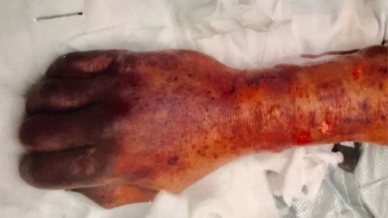 A pesar de haber procedido con los correspondientes tratamientos antibióticos, el hombre desarrolló una neumonía, ampollas en todo el cuerpo, gangrena en manos y pies. Después de 16 días de internamiento, falleció por una falla multiorgánica.