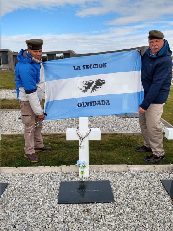 Sabían que la segunda semana de junio en Monte Caseros, se reunían los veteranos de guerra del Regimiento 4. Y en el 2012 se aparecieron con una bandera con la leyenda “La sección olvidada”.