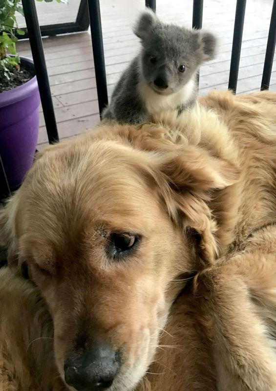 "Era bastante temprano y mi marido me gritó que viniera a ver algo", relató la mujer, quien además aseguró que su mascota estaba dándole calor al koala que no paraba de temblar.