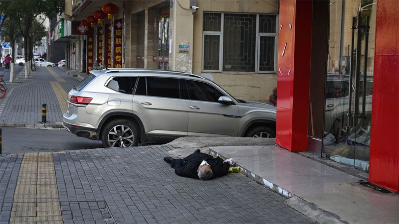La imagen tomada este jueves por un fotógrafo de la agencia de noticias AFP habla por si sola. Un anciano con una mascarilla para protegerse del coronavirus murió en una calle semidesierta, cercana a un hospital en Wuhan, mientras los centros médicos de la ciudad están colapsados por las consultas y la atención a los infectados.
