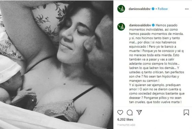 En medio del escándalo, el futbolista de Banfield y padre de su hijo, Morrison, publicó un fuerte mensaje con una foto íntima de cuando eran pareja, en su cuenta de Instagram. “Hemos pasado momentos inolvidables, así como hemos pasado momentos de mierda, y sí, nos hicimos tanto bien y tanto mal... ¡Por Dios! ¡Si nos habremos equivocado! ¡Pero yo te banco a muerte!”, comenzó Osvaldo.