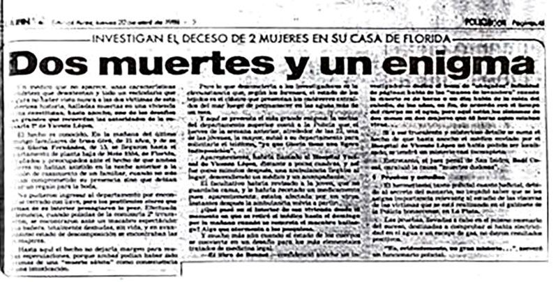 La chica hizo la llamada y se despidió. Segundos después, la mujer estaba nuevamente frente al televisor, prendida de las noticias. No imaginó -era imposible- que tres días después su propia casa, más precisamente el departamento ubicado al fondo del pasillo lateral, sería escenario de un caso policial que con el correr de las semanas se transformaría en un misterio desconcertante, casi imposible de resolver.