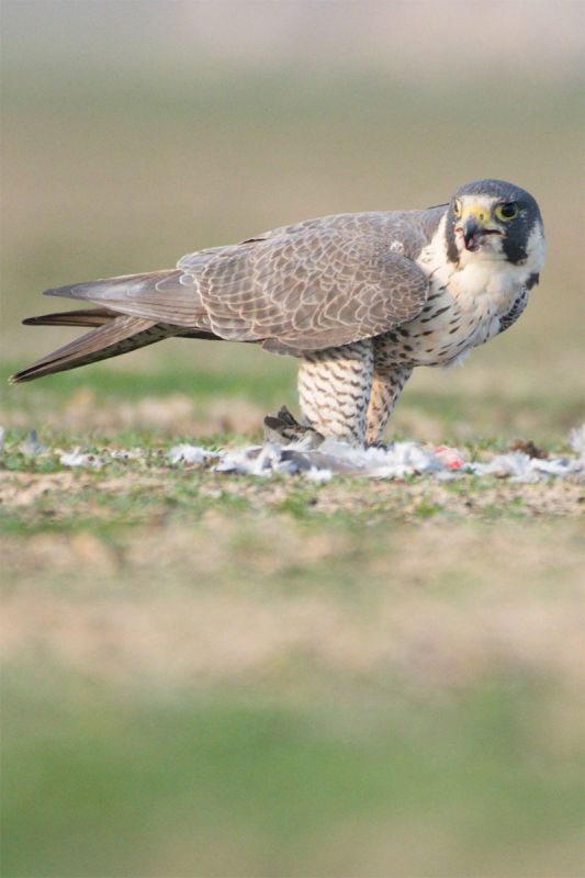 Un halcón peregrino fue captado cerca del lago Osman Sagar, en la India. Su esponjoso plumaje lo hace parecer musculoso.