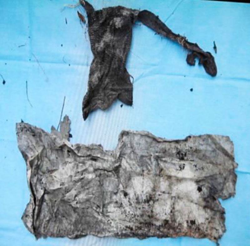 La sábana y cintas con las que apareció el cadçaver d ela pequeña.