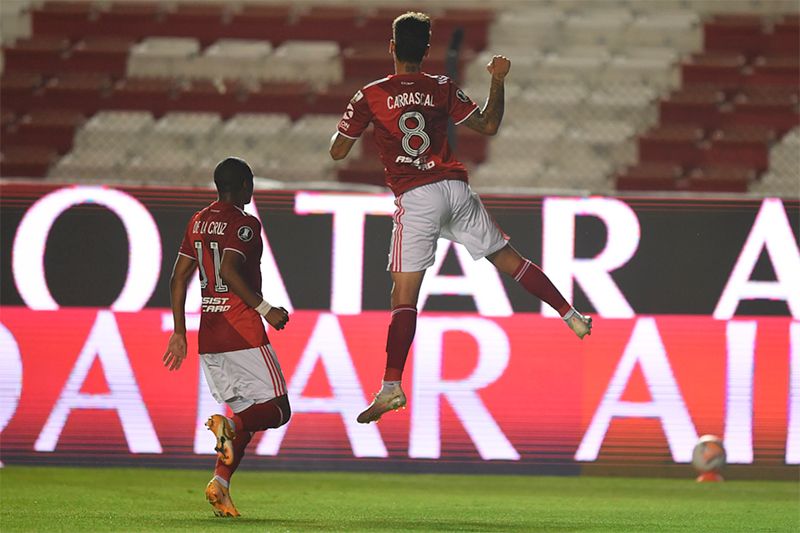 Borré seguía peleado con el gol. A los 6, el colombiano recibió de Carrascal en el área, pero su definición se estrelló contra el poste derecho.