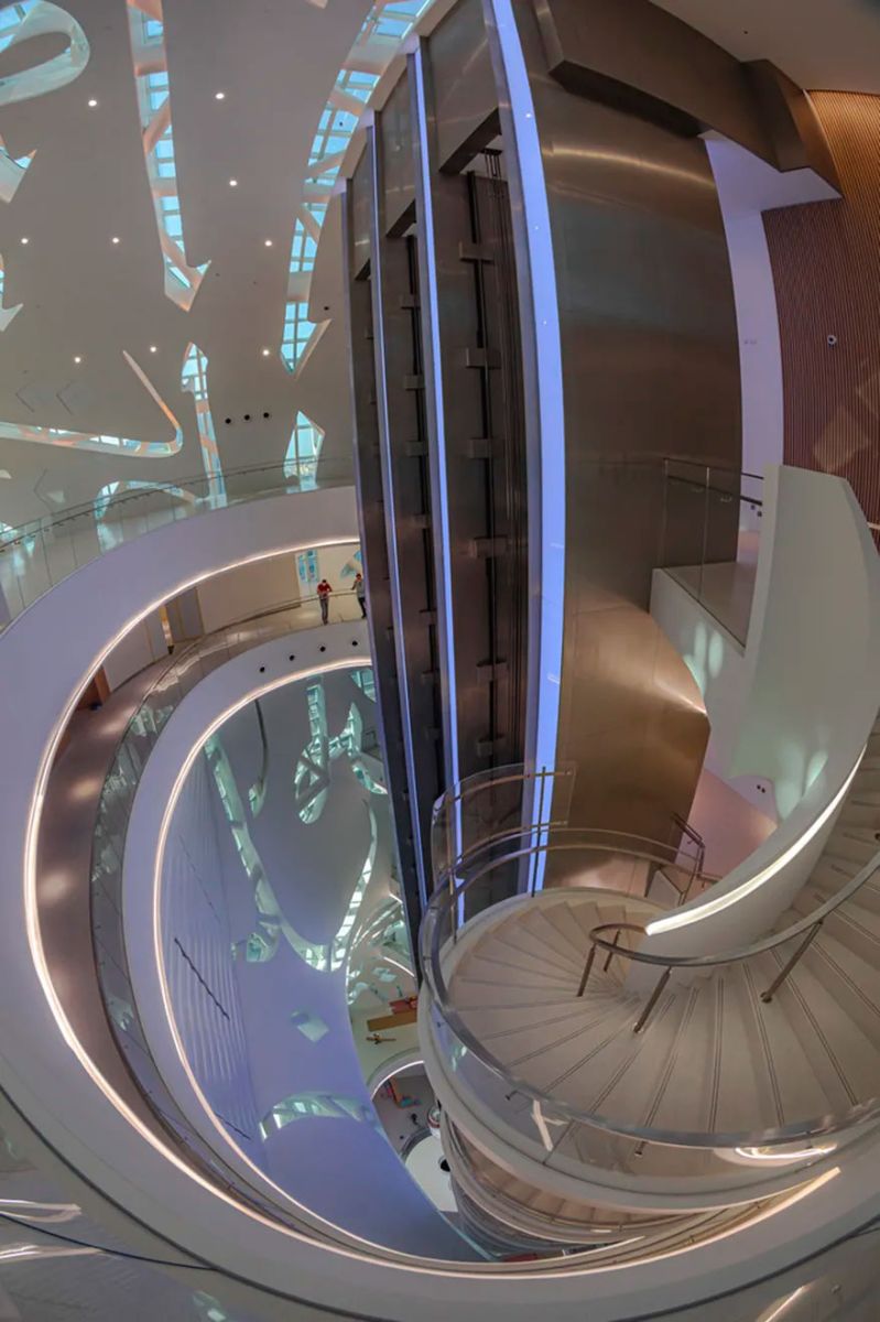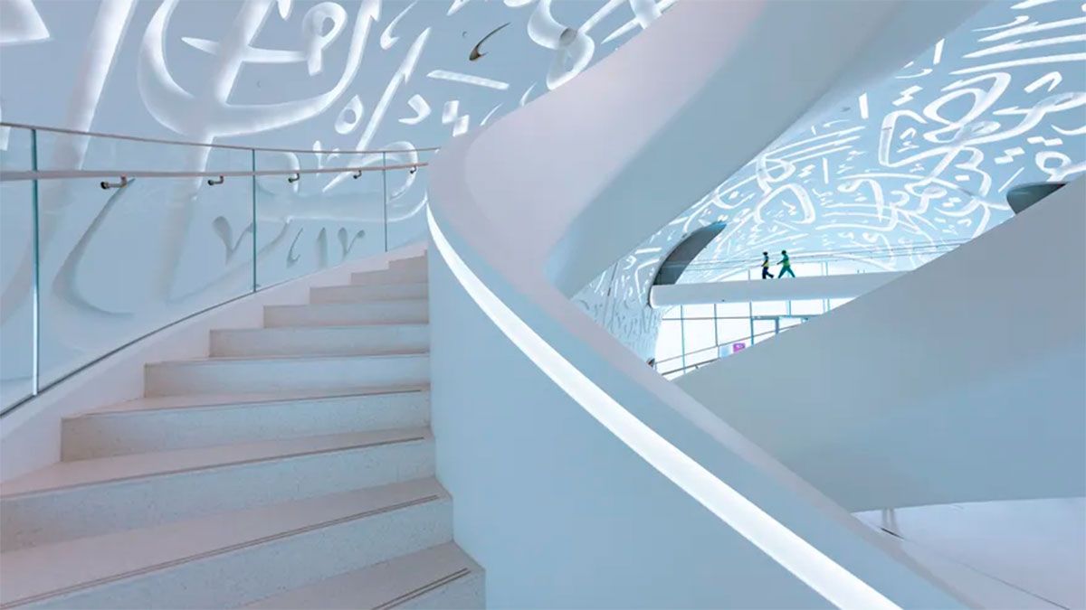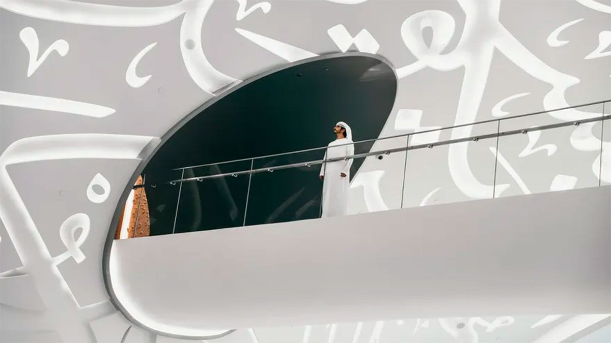 El arquitecto emiratí Shaun Killa fue el encargado de diseñar el espacio, que tiene forma de anillo y no cuenta con columnas de soporte. El edificio está cubierto por ventanas labradas con caligrafía árabe, lo que agrega otro elemento llamativo a la moderna silueta. Las letras escriben un poema árabe del gobernante de Dubai sobre las ambiciones futuristas del emirato.