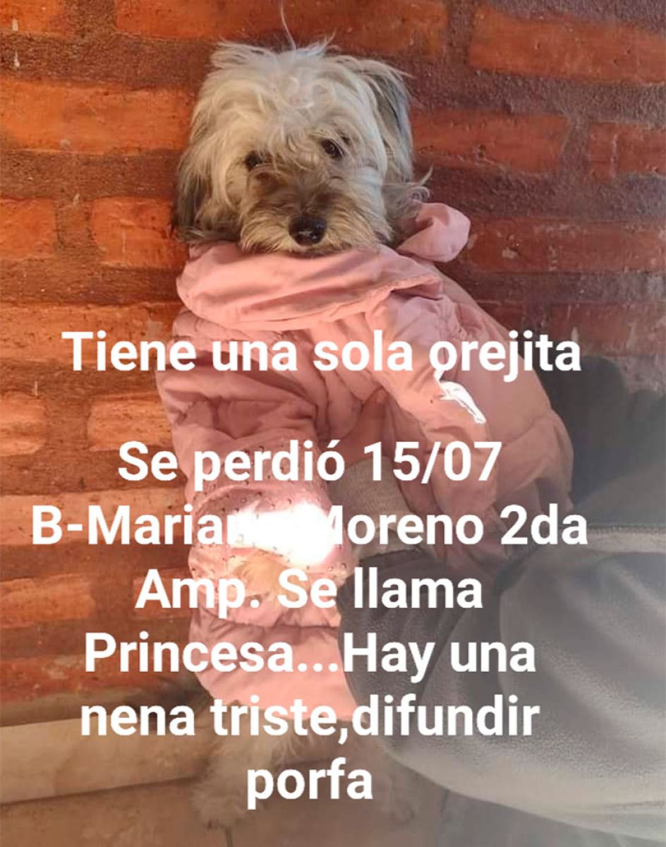 Si la viste o sabes dónde puede estar Princesa, por favor comunicate al 385-6884386 (Nora).