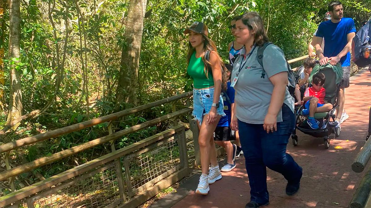 Antonela Roccuzzo sigue disfrutando de unos días en las Cataratas del Iguazú junto a sus hijos, hermanas y sobrinos. Pese a que pidió máxima discreción y trató de pasar lo más inadvertida posible, la mujer de Leo Messi se convirtió en una atracción para los turistas que disfrutan de las bellezas del Parque Nacional. No todos los días te podes cruzar con Antonela, como le pasó a Ángela Costa Alves, que quedó flasheada por su simpatía y buena onda.