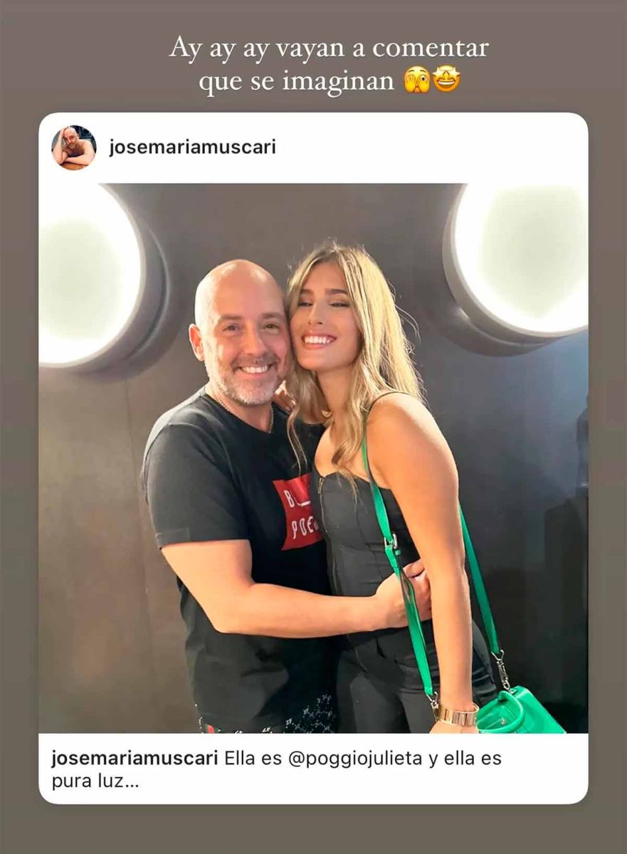 Ni lento ni perezoso, el productor ya tentó a “Disney” para sumarla a sus filas. “Anoche vino Juli Poggio a ver SEX, y me pareció superluminosa y amorosa. Me late algo juntos ¿Les gustaría? Quizás se da, ¿no?”, escribió Muscari. “Aaaaa”, le comentó la rubia junto a emojis de corazón y caritas tiernas.