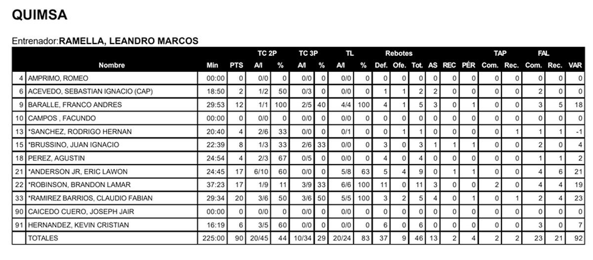En el suplementario Anderson siguió sumando junto a una nueva bomba de Ramirez Barrios para que los dirigidos de Ramella se muestren más enteros y efectivos ante un rival que bajó sus números en libres y que dependió de Jaime para seguir con chances. Triunfo fusionado que lo cerró mejor con Anderson y Baralle por 90/87 para quedar a tiro de avanzar a semifinales.