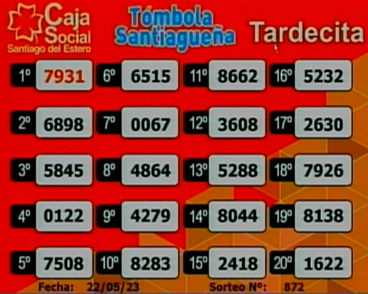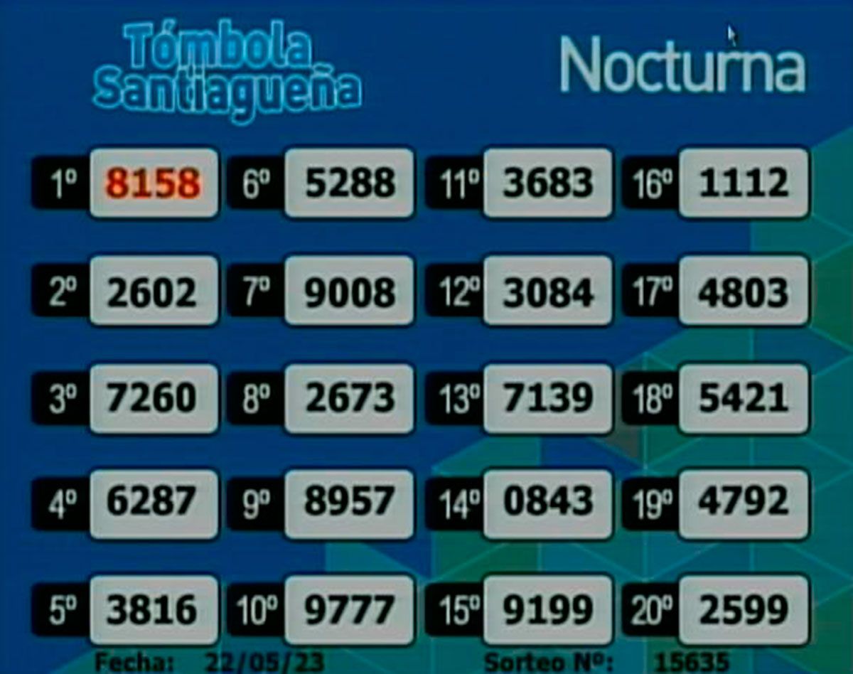 Este lunes 22 de mayo del 2023, como todos los días, se llevó a cabo un nuevo sorteo de la Tómbola Santiagueña.