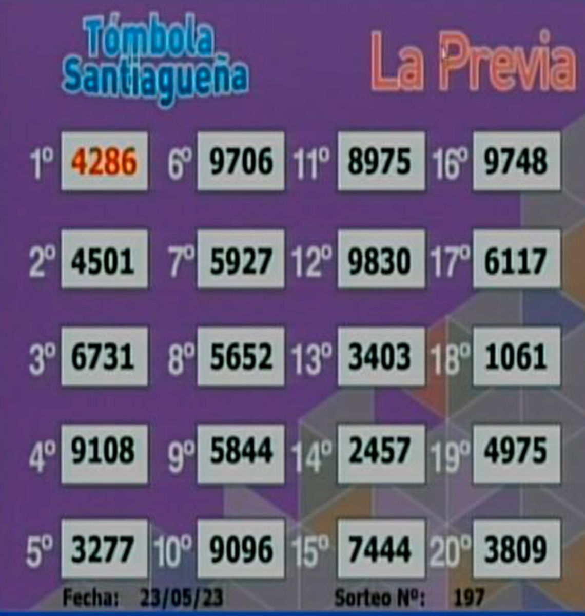 Este martes 23 de mayo del 2023, como todos los días, se llevó a cabo un nuevo sorteo de la Tómbola Santiagueña.