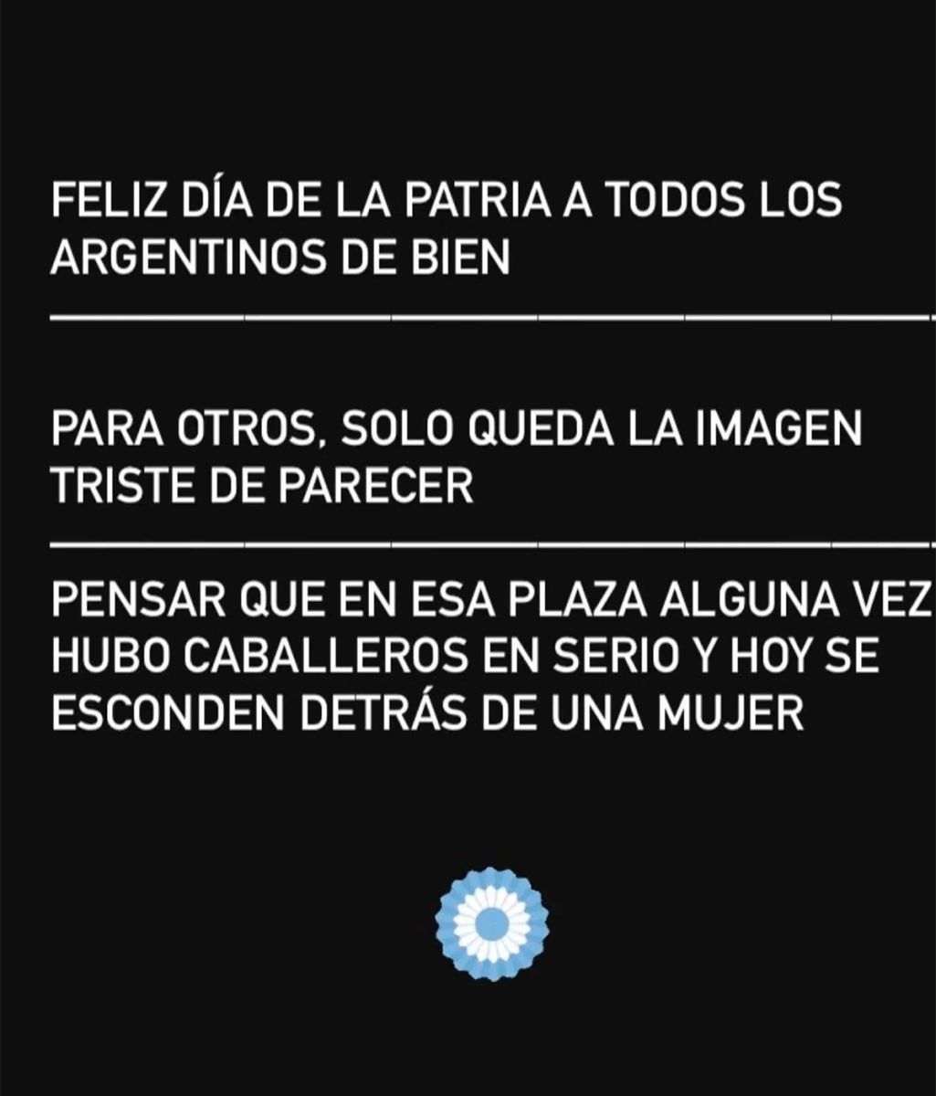 A través de sus historias de Instagram, la conductora hizo un contundente descargo. “Feliz día de la patria a todos los argentinos de bien”, comenzó. Contundente, sumó: “Para otros, solo queda la imagen triste de parecer”.