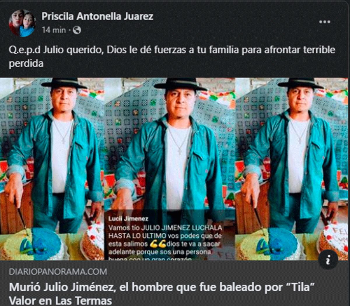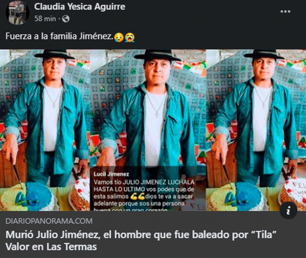 Te recomendamos: Murió Julio Jiménez, el hombre que fue baleado por “Tila” Valor en Las Termas