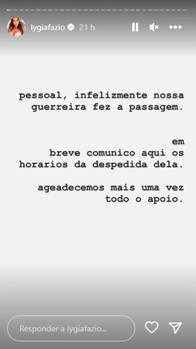 “Amigos, desgraciadamente nuestra guerrera ha cruzado al otro lado. Pronto comunicaré aquí los horarios de su despedida. Agradecemos una vez más todo el apoyo. Les pido que entiendan nuestro momento, no podemos contestar todos los mensajes. Además, la información de lo sucedido ya ha sido explicada aquí. No viene al caso explicar todos los detalles ahora. Respeten nuestro dolor”.