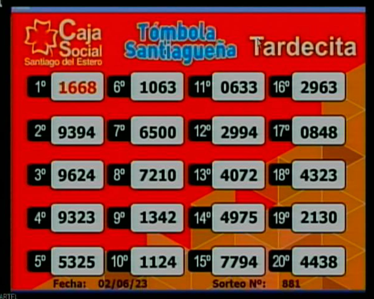 Este viernes 2 de junio del 2023, como todos los días, se llevó a cabo un nuevo sorteo de la Tómbola Santiagueña.