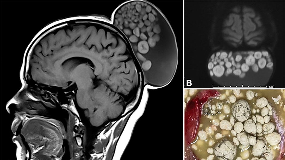 Un equipo médico dirigido por los neurocirujanos Sumit Thakar y Pavan Vasoya, del Instituto Sri Sathya Sai de Ciencias Médicas Superiores (India), extirparon un bulto en la cabeza de una mujer de 52 años que se encontraba lleno de bolas blancas como si fuese un "saco de canicas". En un informe publicado recientemente en la revista Radiology, los autores detallaron que la protuberancia estaba creciendo en el cuero cabelludo de la mujer desde su infancia.