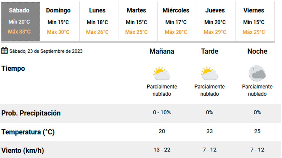 Para el domingo se esperan condiciones muy parecidas a las de este sábado, con registros que oscilarán entre los 19 grados de mínima y 30 de máxima. El cielo, agrega el Servicio Meteorológico Nacional, estará “mayormente nublado”, aunque se descarta la probabilidad de chaparrones.