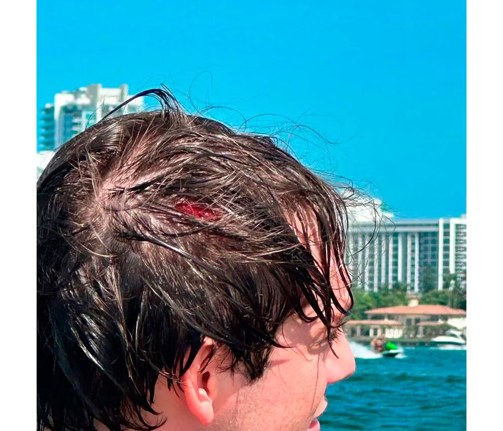 El cantante sufrió un importante corte en su cabeza y fue asistido en medio del agua.