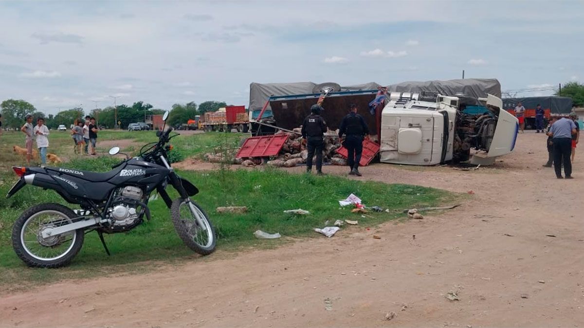 El incidente se originó cuando reventó un neumático del camión que venía desde la provincia de Catamarca. Tras el accidente, toda la carga terminó en el suelo.