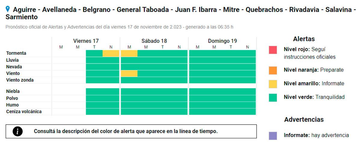 Dicho comunicado abarca a los departamentos: Aguirre - Avellaneda - Belgrano - General Taboada - Juan F. Ibarra - Mitre - Quebrachos - Rivadavia - Salavina – Sarmiento.