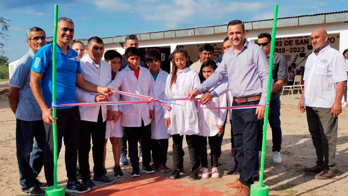 En el Paraje San Pedro del Departamento Sarmiento, se llevó a cabo la inauguración del primer playón deportivo en la Escuela N°992, jardín anexo N°378. Este espacio cuenta con canchas de básquet, fútbol, vóley y otras disciplinas deportivas, y su construcción forma parte de las políticas públicas implementadas por la gestión encabezada por el comisionado Marcos Tenaglia.