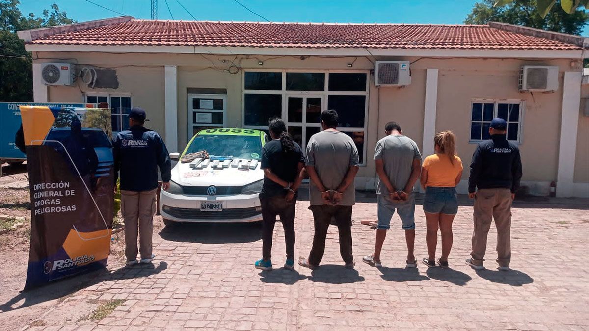 Personal de la Dirección General de Seguridad Vial de la Policía de la provincia detuvo este miércoles por la mañana a tres hombres y una mujer que circulaban por ruta 89, cuando fueron retenidos en un control vehicular en el puesto de Suncho Corral-Corral Grande, en el departamento Juan Felipe Ibarra, donde se detectó un cargamento de 5,875 kilogramos de marihuana.