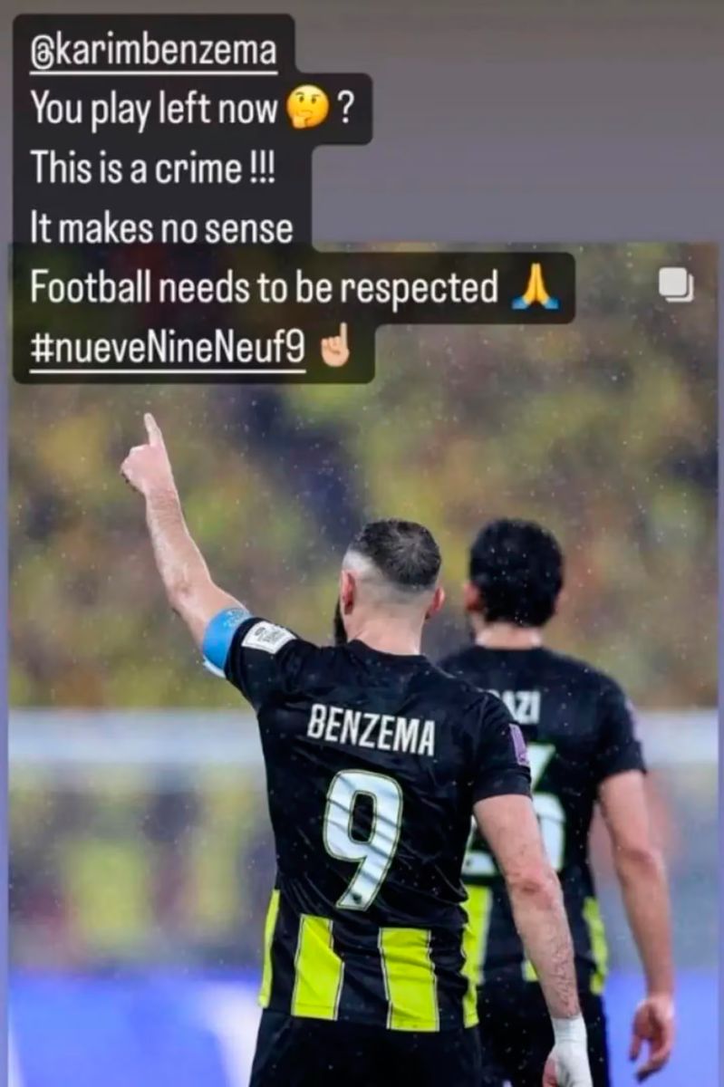 Gressy no dudo en atacar al técnico. “Karim, tú hoy jugaste por la izquierda. Esto es un crimen. Esto no tiene sentido. El fútbol debe ser respetado”, escribió en una historia de Instagram.