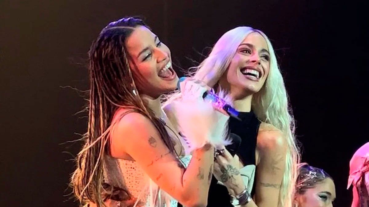 Luego, envueltas en el griterío de la gente, las artistas estallaron en risas y se dieron un fuerte abrazo, marcando la gran amistad que las une tanto arriba como abajo del escenario. “Fuerte el aplauso para Tini”, expresó la oriunda de Nogoyá, Entre Ríos para agradecerle a su compañera por su participación.