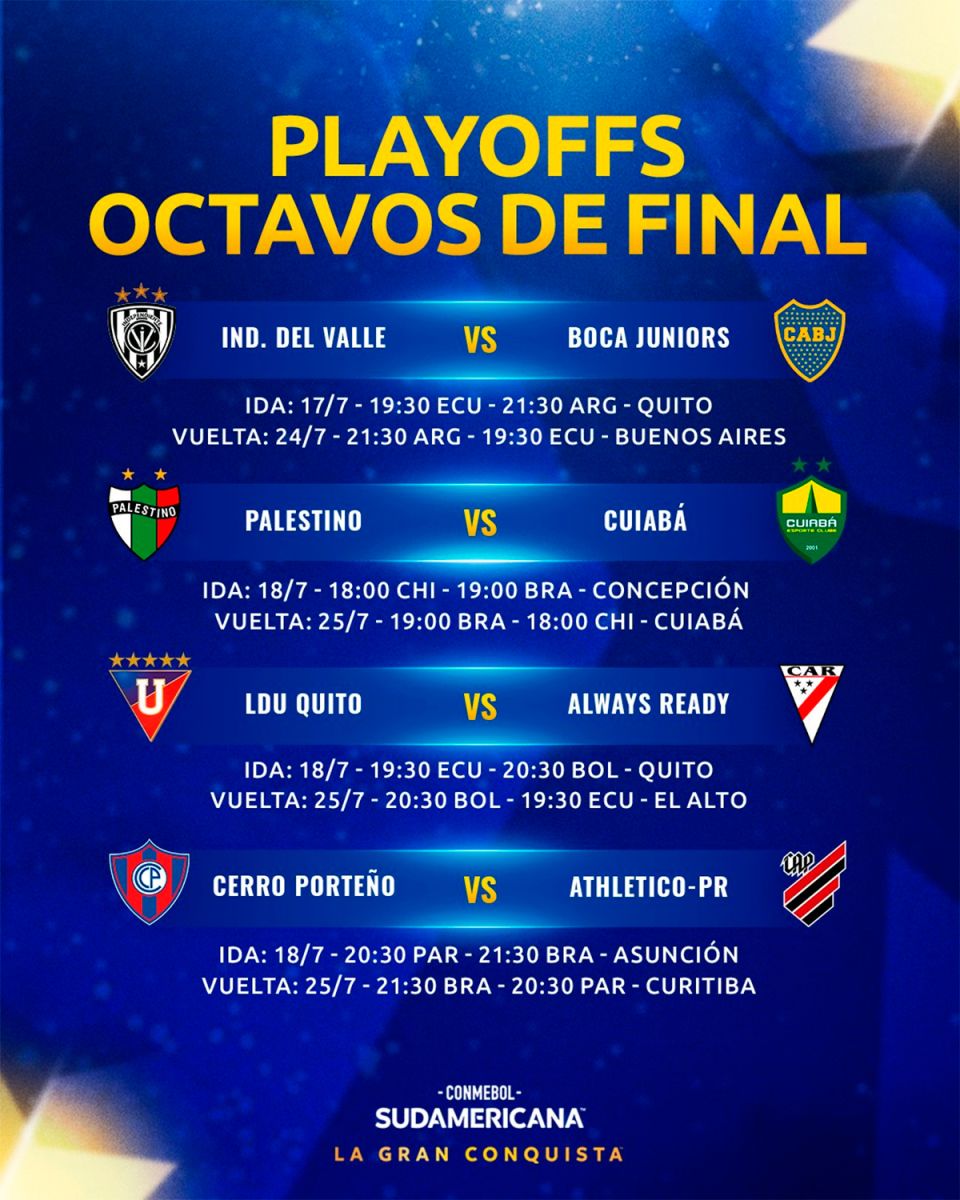Se confirmaron los días y horarios de los playoffs de la Copa Sudamericana: cuándo juega Boca