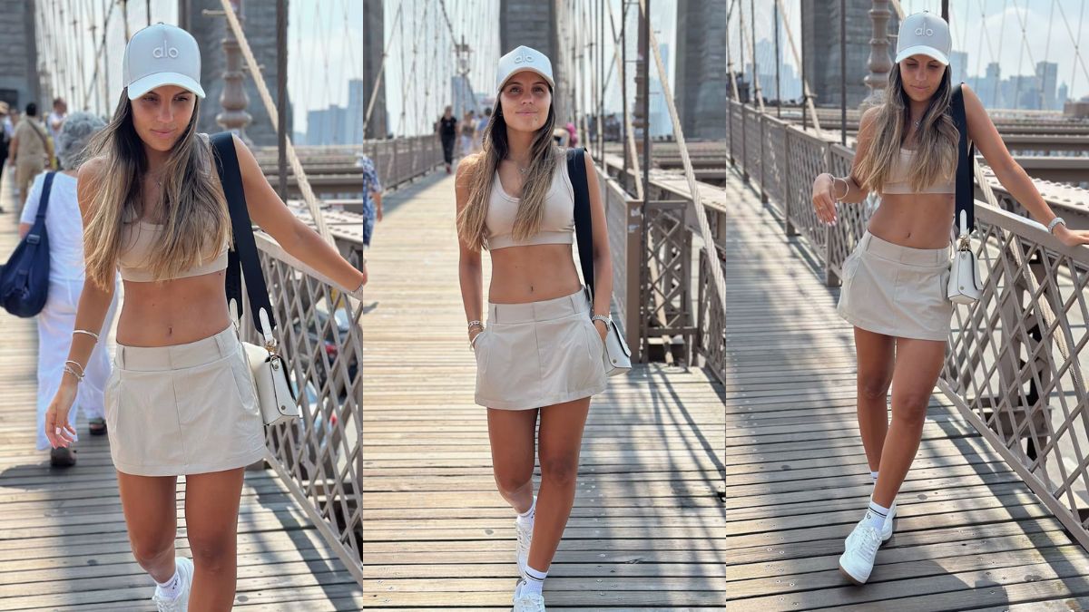 Desde el Brooklyn Bridge en Nueva York, se lució con un conjunto de dos piezas en tonos beige y causó furor en Instagram, donde actualmente la siguen casi 570 mil personas de alrededor del mundo.