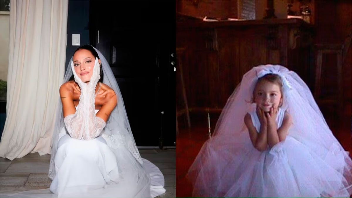A hora de haber pasado por el altar, Oriana Sabatini sorprendió a sus seguidores con una tierna publicación. En el posteo de Instagram se pueden ver dos postales: una que se tomó este sábado durante su casamiento y una de su infancia, donde también aparece vestida de novia.