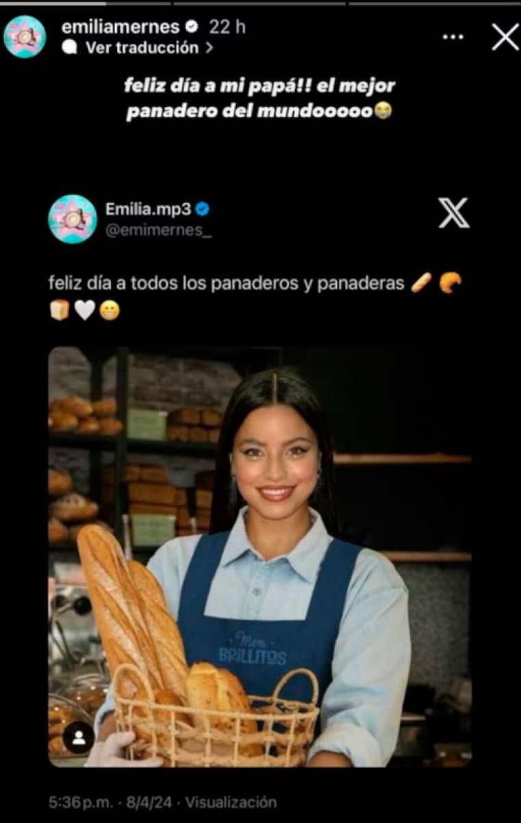 Emilia Mernes, cantante argentina aclamada en todo el mundo, saludó a su querido papá en un día muy especial para él y su familia, el Día del Panadero.