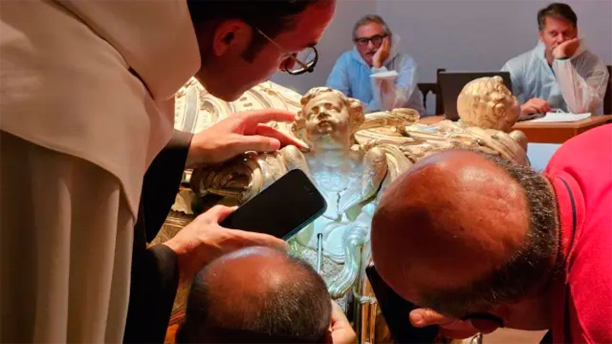 Hacia las 8:00 de la mañana, la comitiva de expertos, liderados por Luigi Capasso, director del equipo científico que trabaja con el dicasterio vaticano de las Causas de los Santos, procedieron a la apertura y traslado de los relicarios al lugar habilitado para el estudio. Primero se ha retirado la losa de mármol; después, los científicos, acompañados de los tres miembros del tribunal eclesiástico que estaban presentes, han abierto el sepulcro de plata con las cuatro llaves necesarias para acceder al interior.