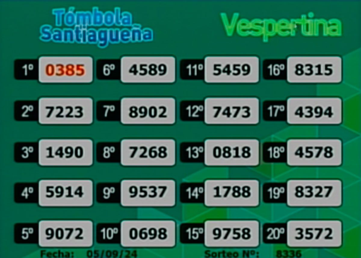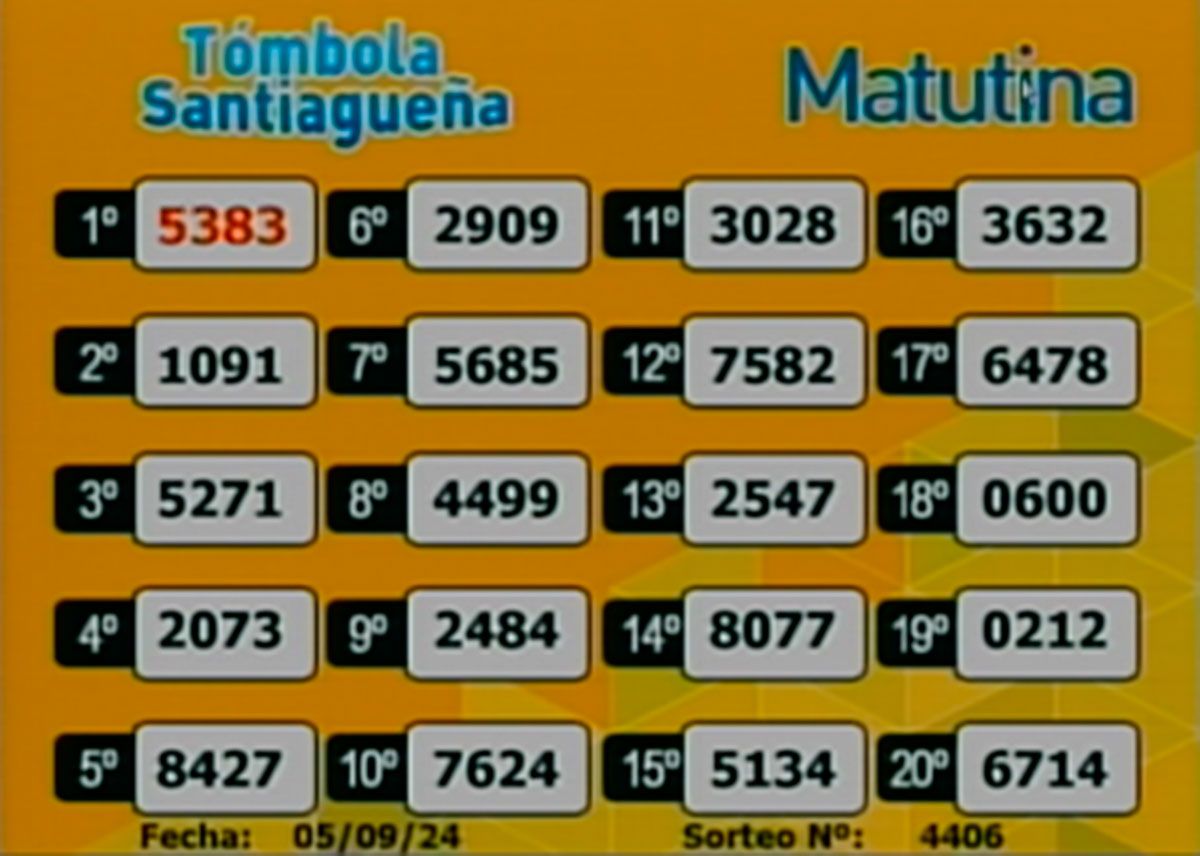 Este jueves 5 de septiembre del 2024, como todos los días, se llevó a cabo un nuevo sorteo de la Tómbola Santiagueña.