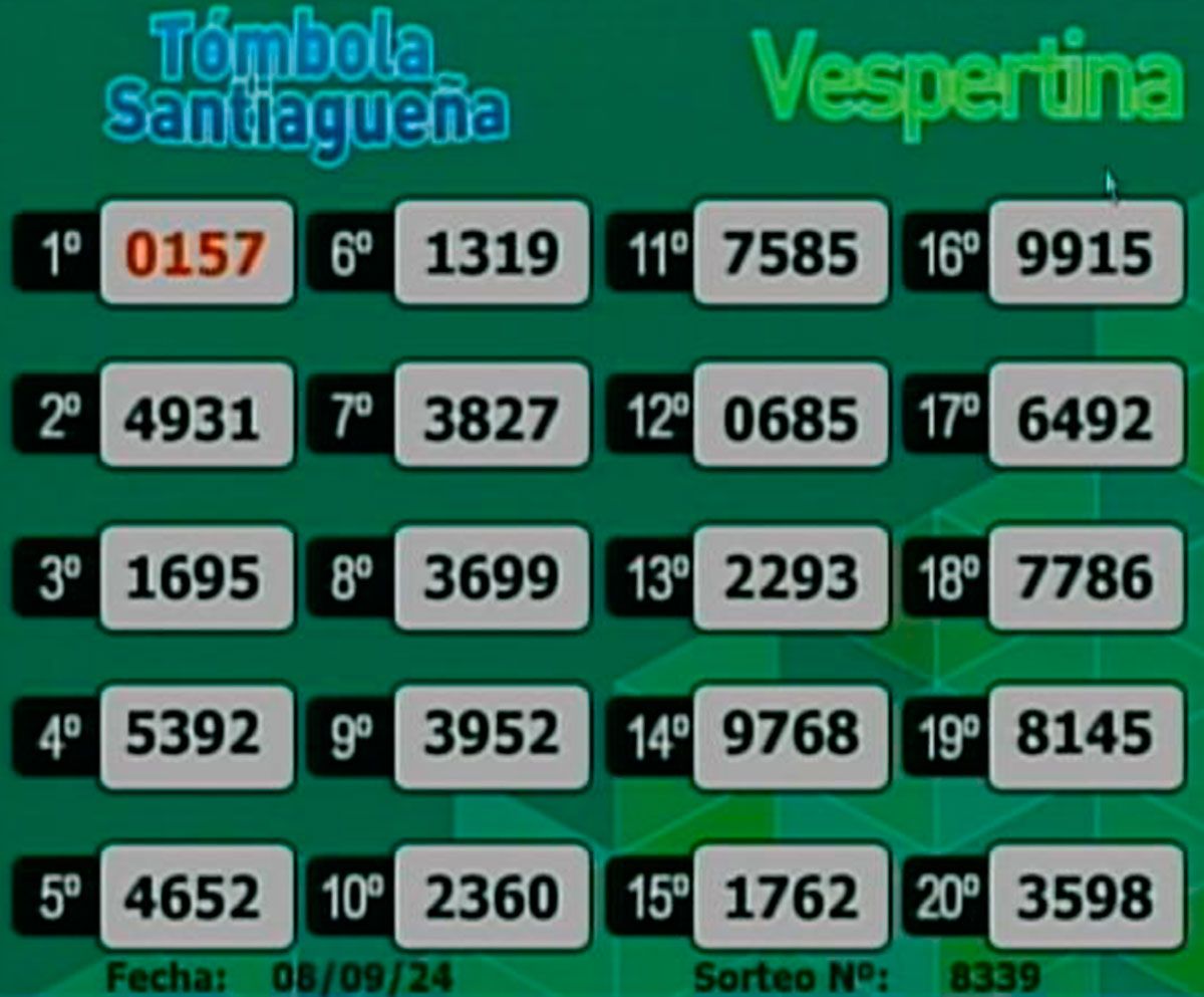 Este domingo 8 de septiembre del 2024, como todos los días, se llevó a cabo un nuevo sorteo de la Tómbola Santiagueña.