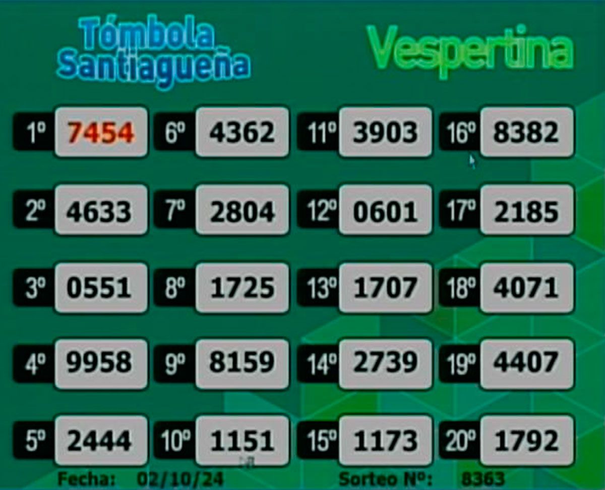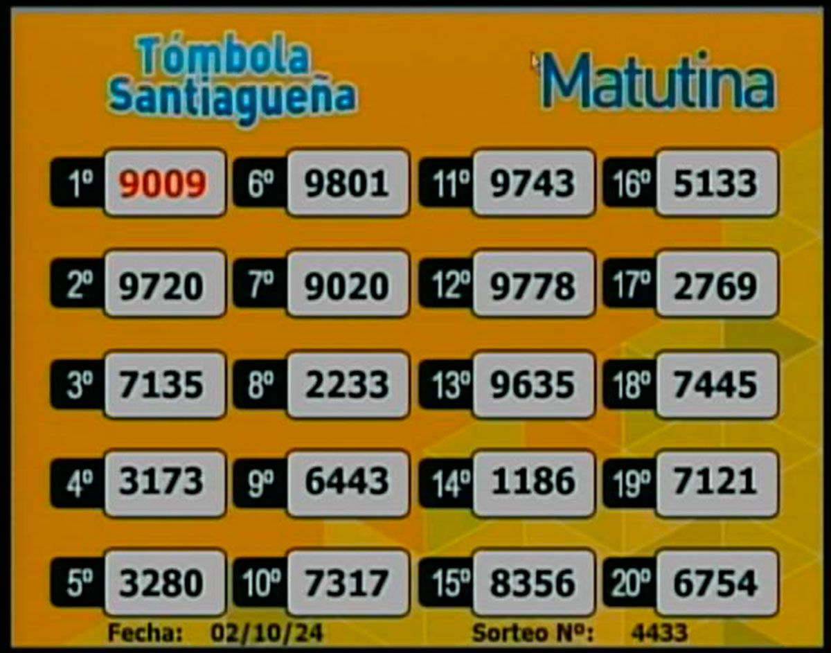 Este miércoles 2 de octubre del 2024, como todos los días, se llevó a cabo un nuevo sorteo de la Tómbola Santiagueña.