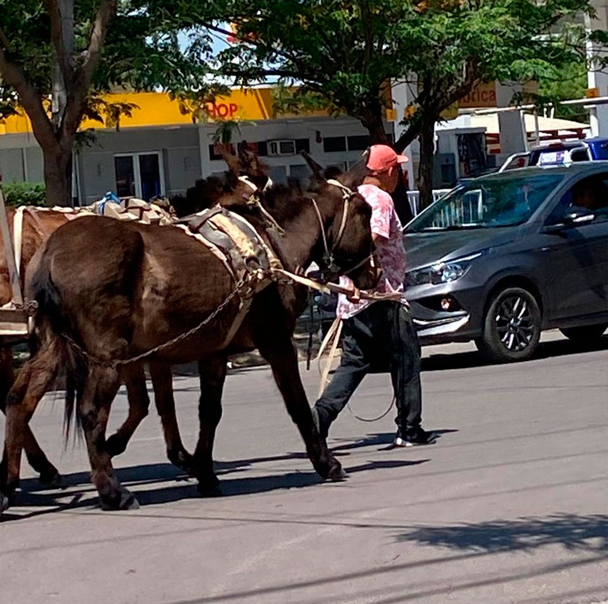 Esto provocó la intervención de personas que pasaban por el lugar, tras lo cual desenganchó a ambos animales y se retiró del lugar.