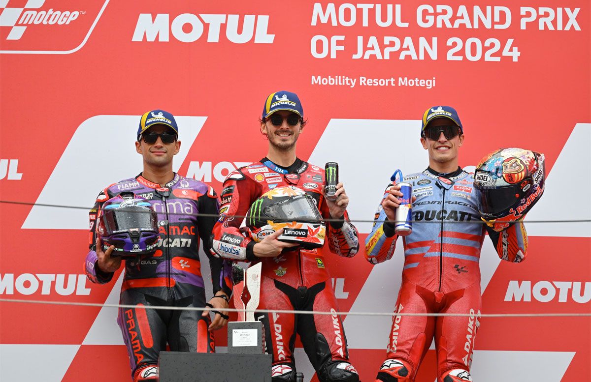 El piloto italiano Francesco "Pecco" Bagnaia se llevó la victoria en el Gran Premio de Japón, cerrando un fin de semana ideal que lo dejó a solo 10 puntos del líder del campeonato, el español Jorge Martín.