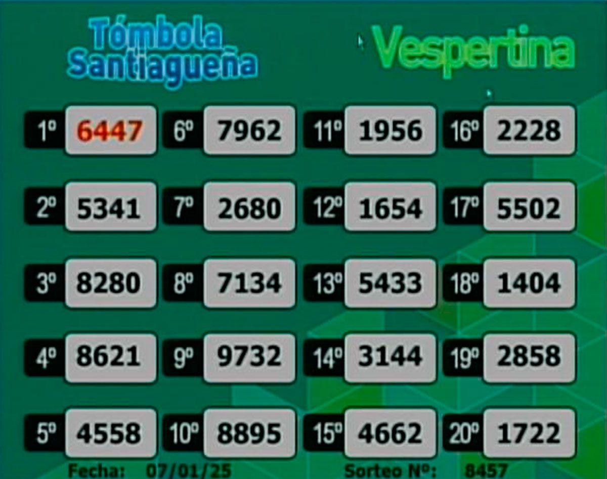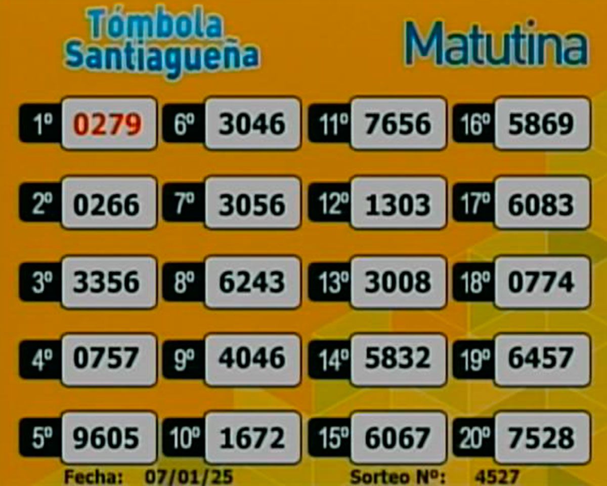 Este martes 7 de enero del 2025, como todos los días, se llevó a cabo un nuevo sorteo de la Tómbola Santiagueña.