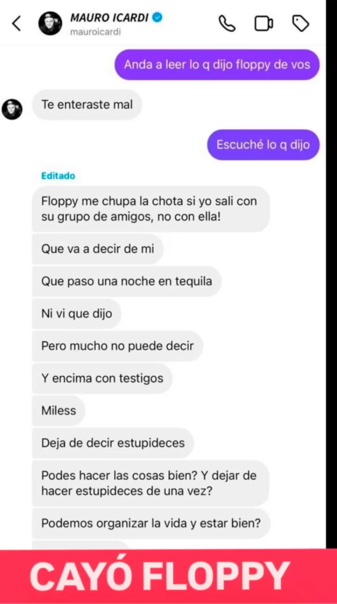 Durante la última semana se filtró un chat entre Mauro Icardi y Wanda Nara en el que resultó salpicada Floppy Tesouro. La empresaria aseguraba que el futbolista la había engañado con la mediática, pero él lo negó con un exabrupto. “Floppy me chupa la ch... si yo salí con su grupo de amigos, no con ella”, lanzó.