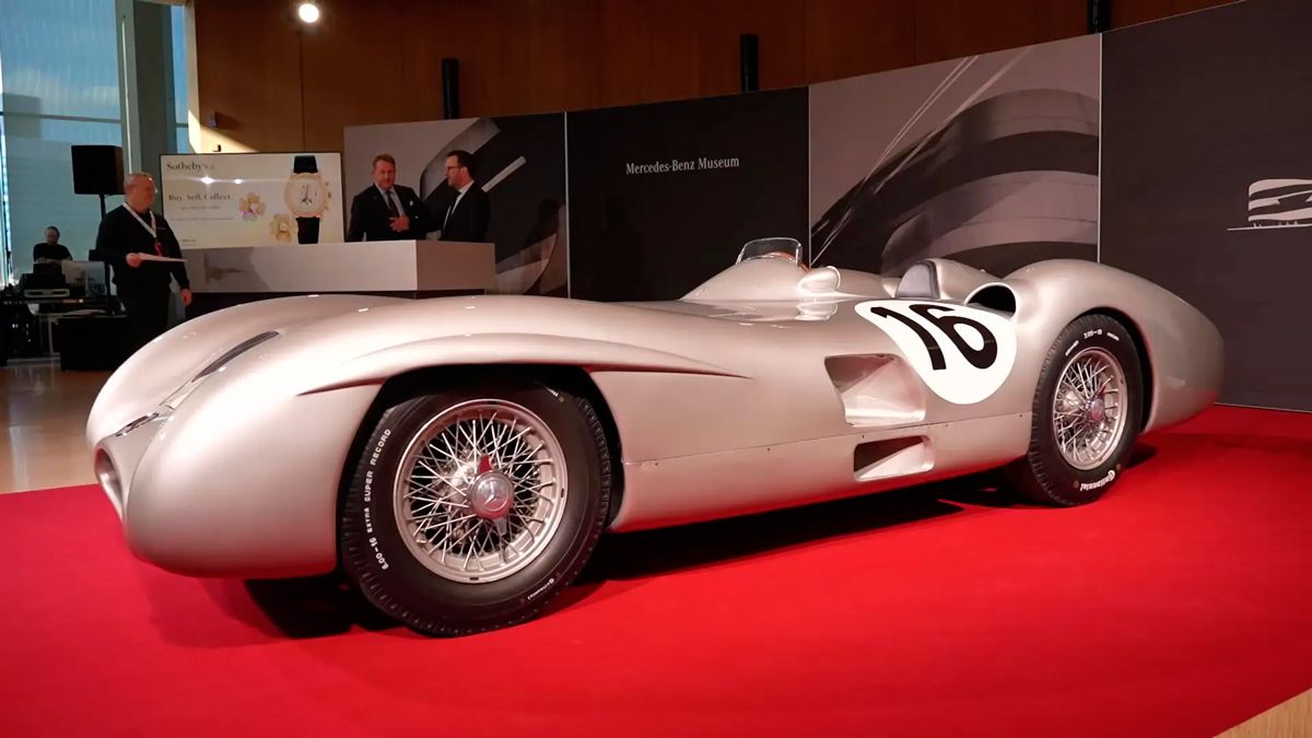 Un Mercedes W196 R Stromlinienwagen, icónico monoplaza conducido por Juan Manuel Fangio y Stirling Moss, fue subastado por una cifra récord de 42,7 millones de libras esterlinas (USD 52,5 millones).