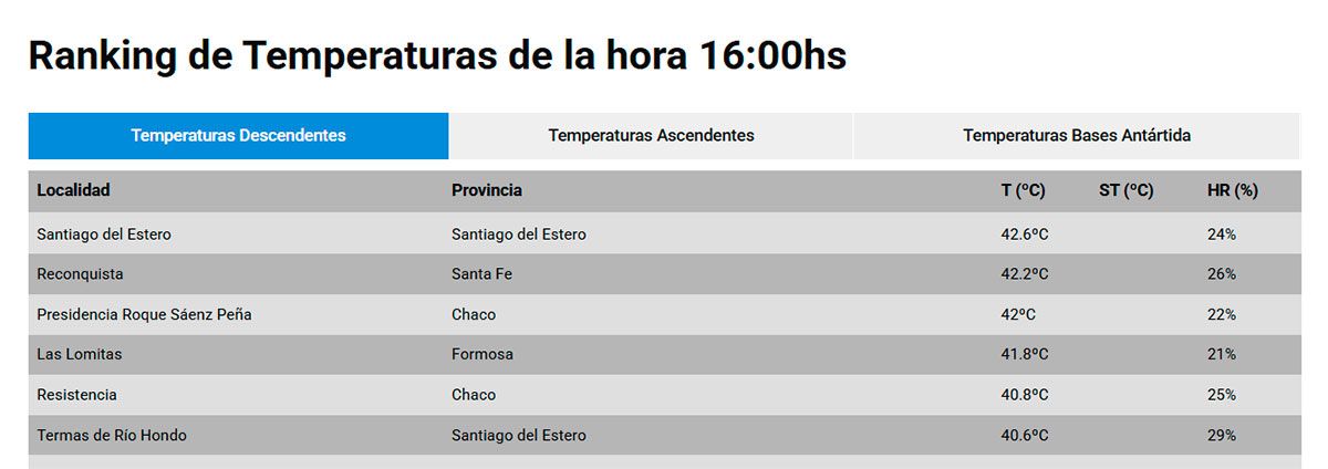 Además, no se prevén cambios de tiempo para las próximas horas: para este miércoles se anuncian 43° y vientos del sector norte.
