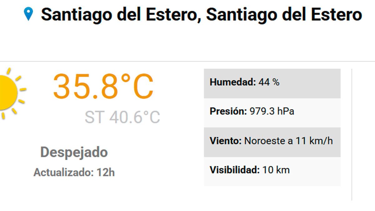 Y las altas temperaturas parecen haber llegado para quedarse en Santiago del Estero y otras provincias y regiones argentinas. Sí, a las once de la mañana el termómetro marcó casi 33,2º grados, aunque la sensación se ubicó en los 37,3º, según el Servicio Meteorológico Nacional.