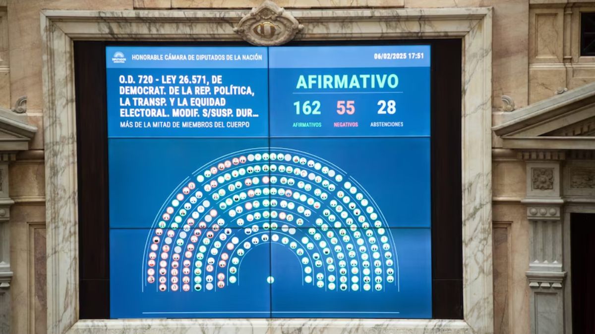 La Cámara de Diputados aprobó la suspensión de las elecciones primarias abiertas, simultáneas y obligatorias (PASO) en una sesión extraordinaria cargada de tensión. Con 162 votos afirmativos, 55 negativos y 28 abstenciones, el proyecto obtuvo el respaldo mayoritario del oficialismo y de sectores aliados, mientras que la oposición se dividió entre el rechazo y la abstención.
