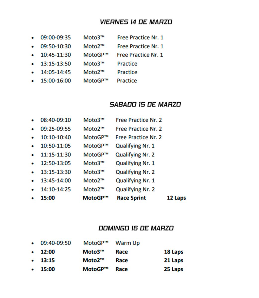 El Gran Premio de la República Argentina de MotoGP ya tiene su cronograma provisional confirmado. La organización del campeonato publicó los horarios de cada jornada en el sitio oficial de MotoGP, detallando el inicio de la actividad en pista en el Circuito Internacional de Termas de Río Hondo.