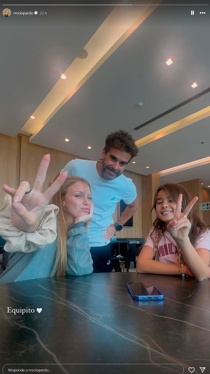 El actor publicó imágenes en el aeropuerto junto a la menor y a su novia Rocío Pardo justo antes de embarcar en un avión.